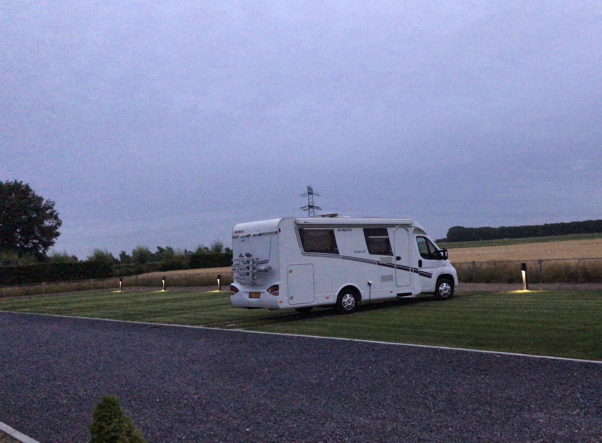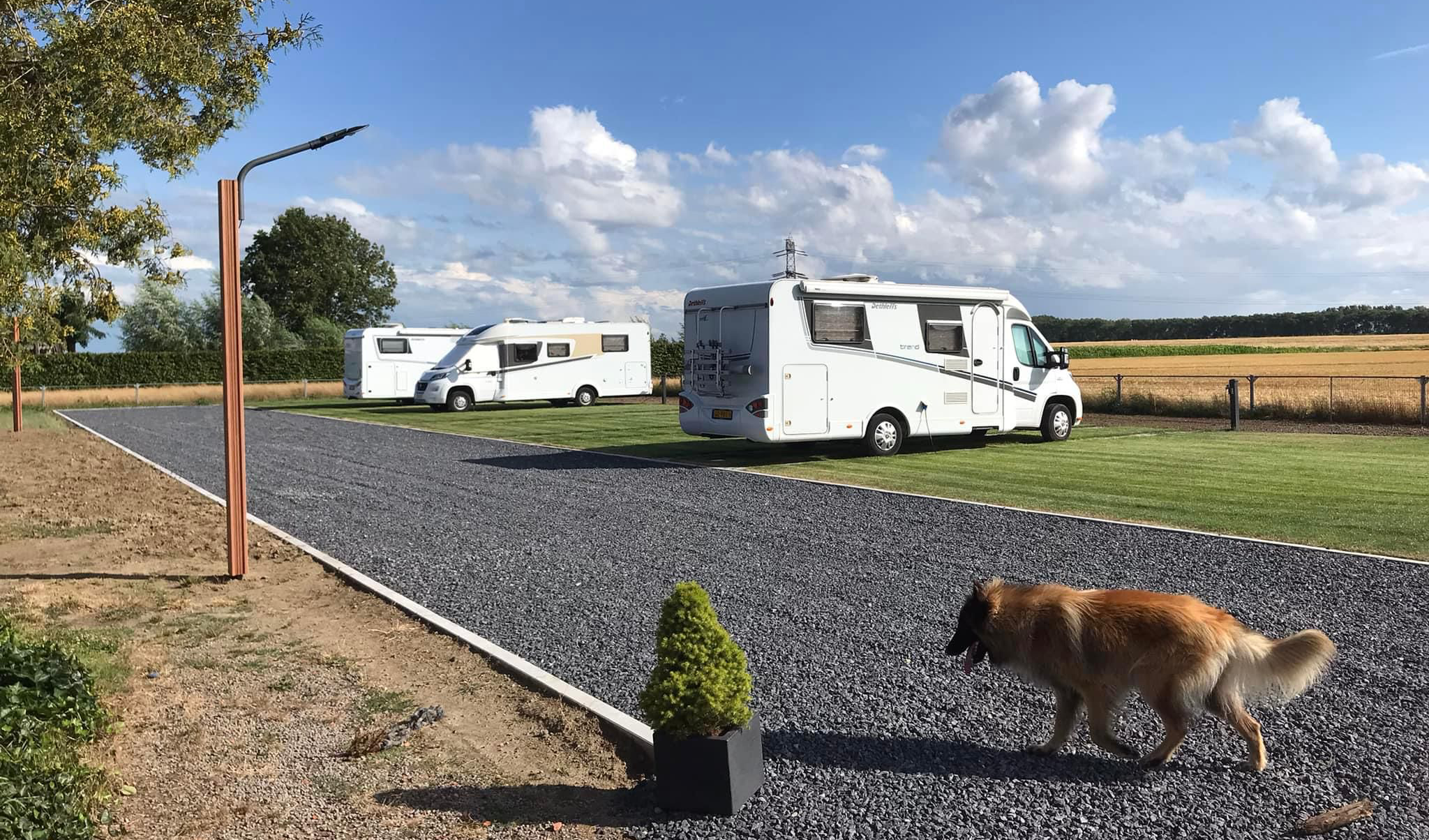 De camperplaatsen zijn voorzien van een gras en verhard gedeelte en een 10 ampere stroomaansluiting. De plaatsen zijn geschikt voor campers tot 10 meter.